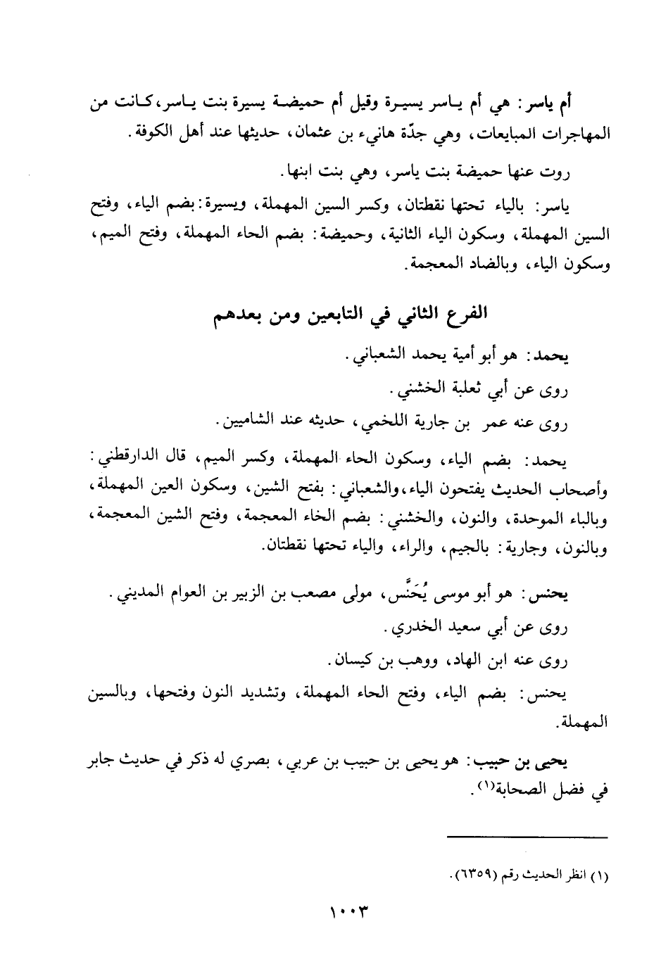 روت عنها: حميضة بنت ياسر وهي بنت ابنها.