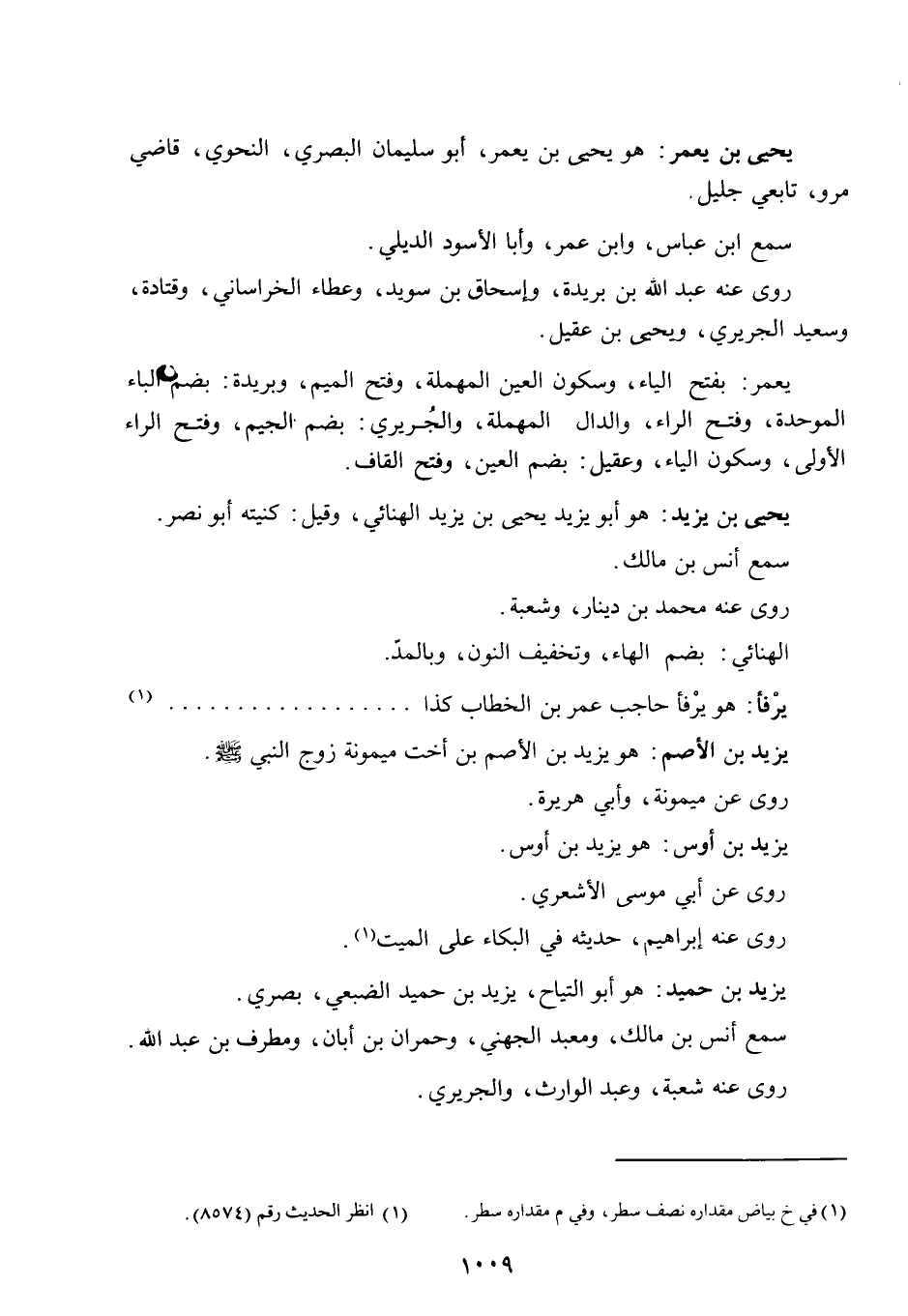 هو يَحيى بن يَعْمَر، أبو سُليمان البَصريُّ، النَّحويُّ. قاضي مرو، تابعي جليل.