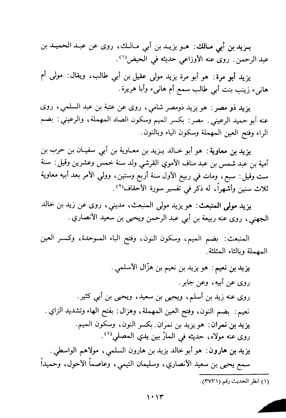 M (2984) تهذيب الكمال (3/1547) ، تهذيب التهذيب (11/374) (274) ، تقريب التهذيب (2/373) ، الكاشف (3/288) ، تاريخ البخاري الصغير (1/178) ، الجرح والتعديل (9/1277) ، المعين (243) .