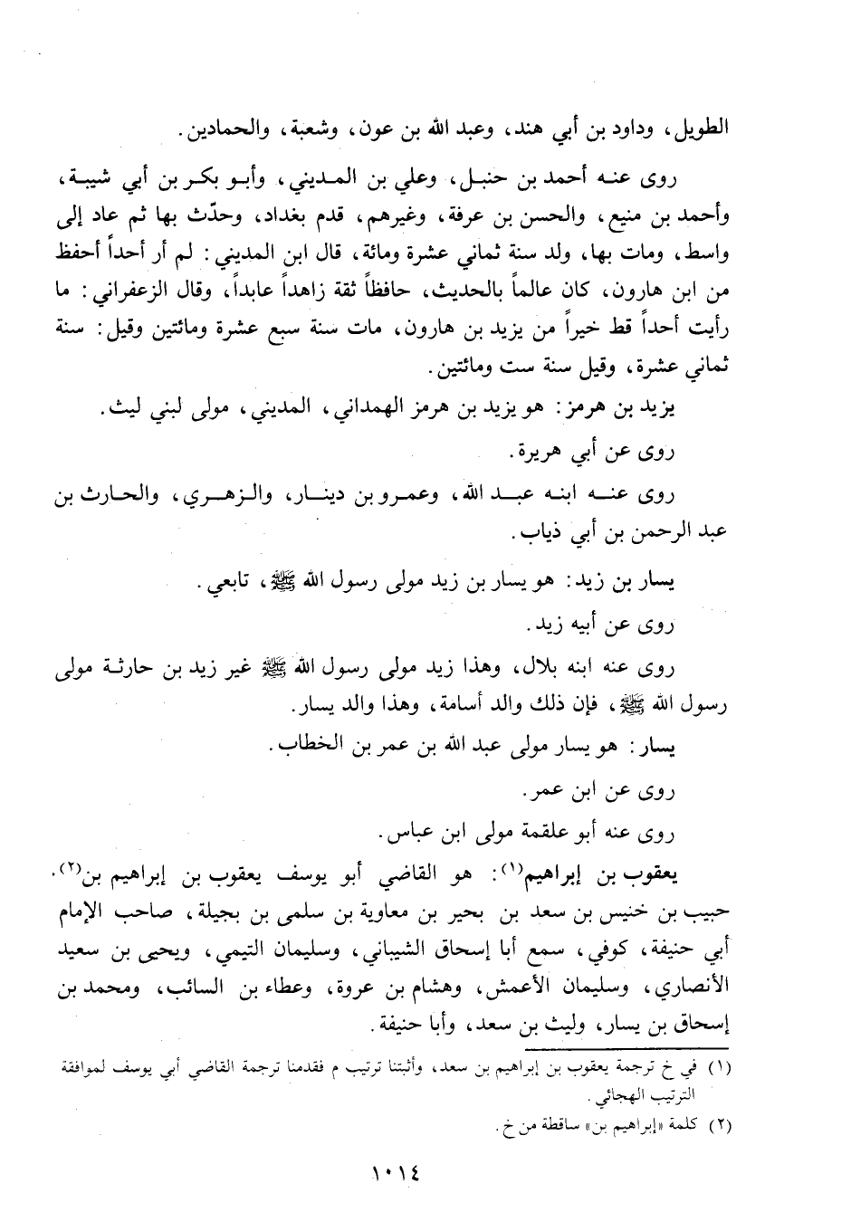 (¬1) في خ ترجمة يعقوب بن إبراهيم بن سعد، وأثبتنا ترتيب م فقدمنا ترجمة القاضي أبي يوسف لموافقة الترتيب الهجائي.