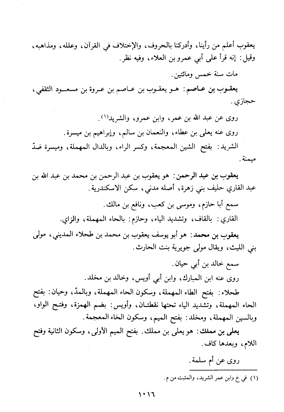 هو يعقوبُ بن عاصم بن عُروة بن مَسعود الثقفي، حجازي.