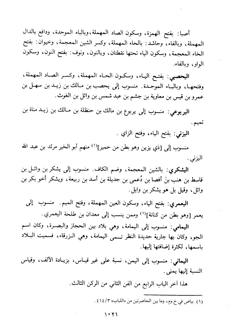 منسوب إلى يَحْصِب بن مَالك بن زيد بن سهل بن عَمرو بن قيس بن مُعاوية بن جُشم بن عبد شمس بن وائل بن الغَوْث.