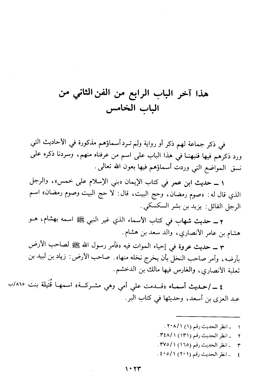 الباب الخامس: في ذكر جماعة لهم ذكر أو رواية ولم ترد أسماؤهم مذكورة في الأحاديث التي