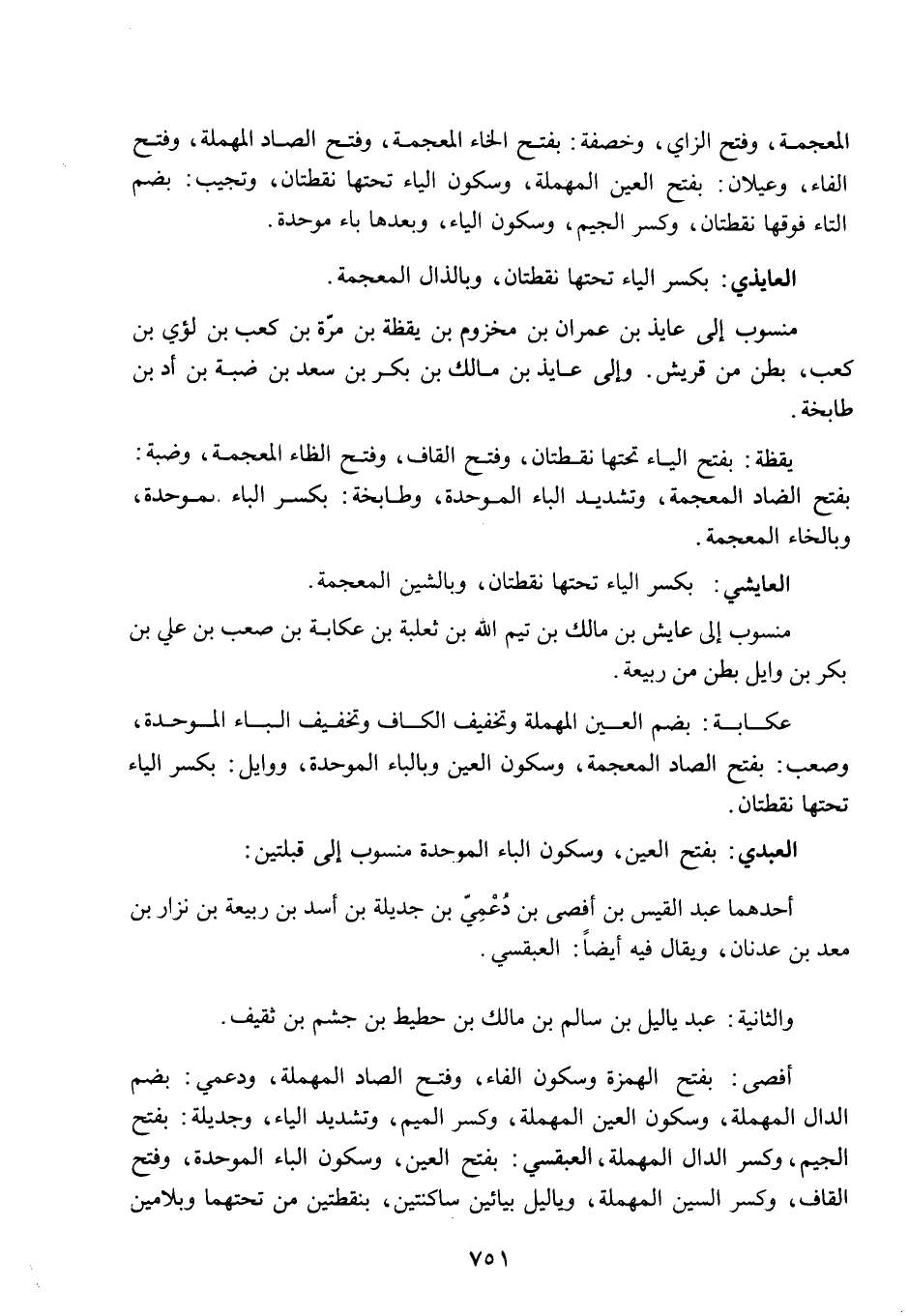 منسوب إِلى قبيلتين: أحدهما: عبد القيس بن أَفْصى بن دُعْمِي بن جَدِيلة بن أسد بن رَبيعة بن نزار بن مَعد بن عدنان، ويقال فيه أيضاً: العبقسي. والثانية: عبدُ يالِيل بن سالم بن مالك بن حُطَيط بن جُشم بن ثَقيف.