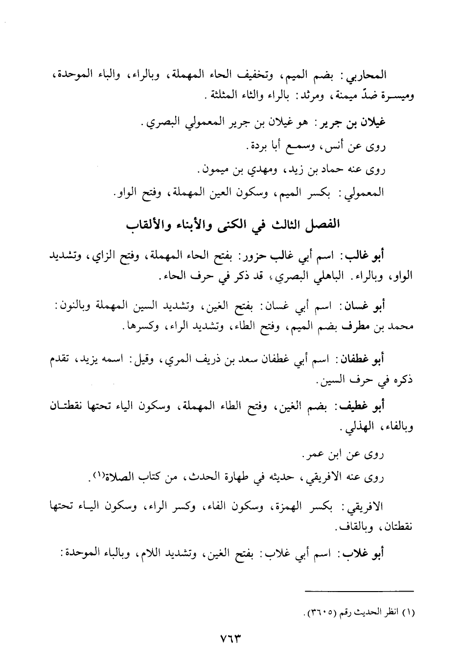 الفصل الثالث: في الكنى والأبناء والألقاب