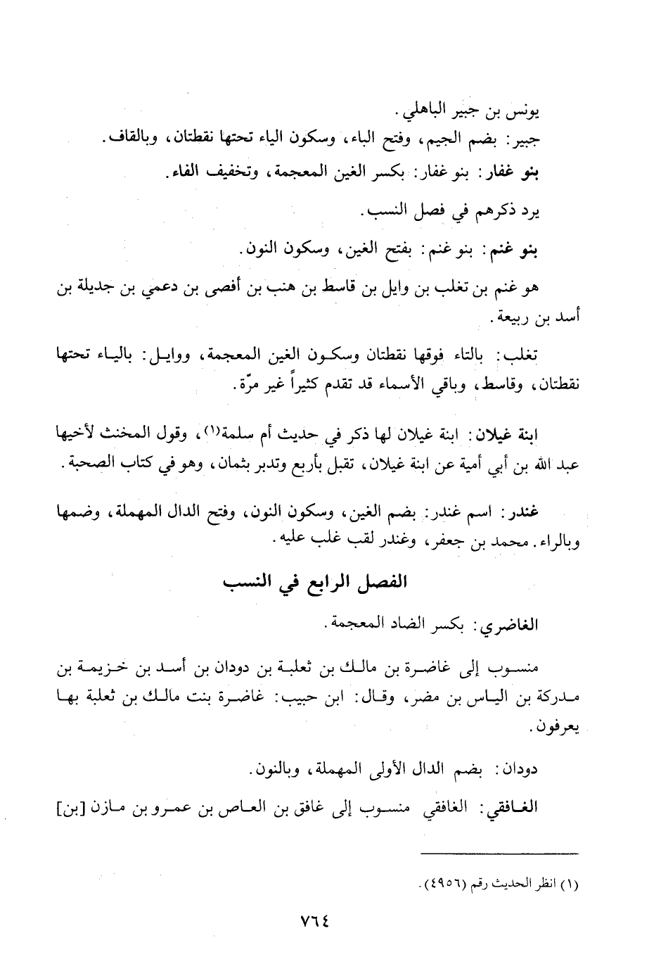 بنو غفار: بكسر الغين المعجمة، وتخفيف الفاء. يرد ذكرهم في فصل النَّسب.