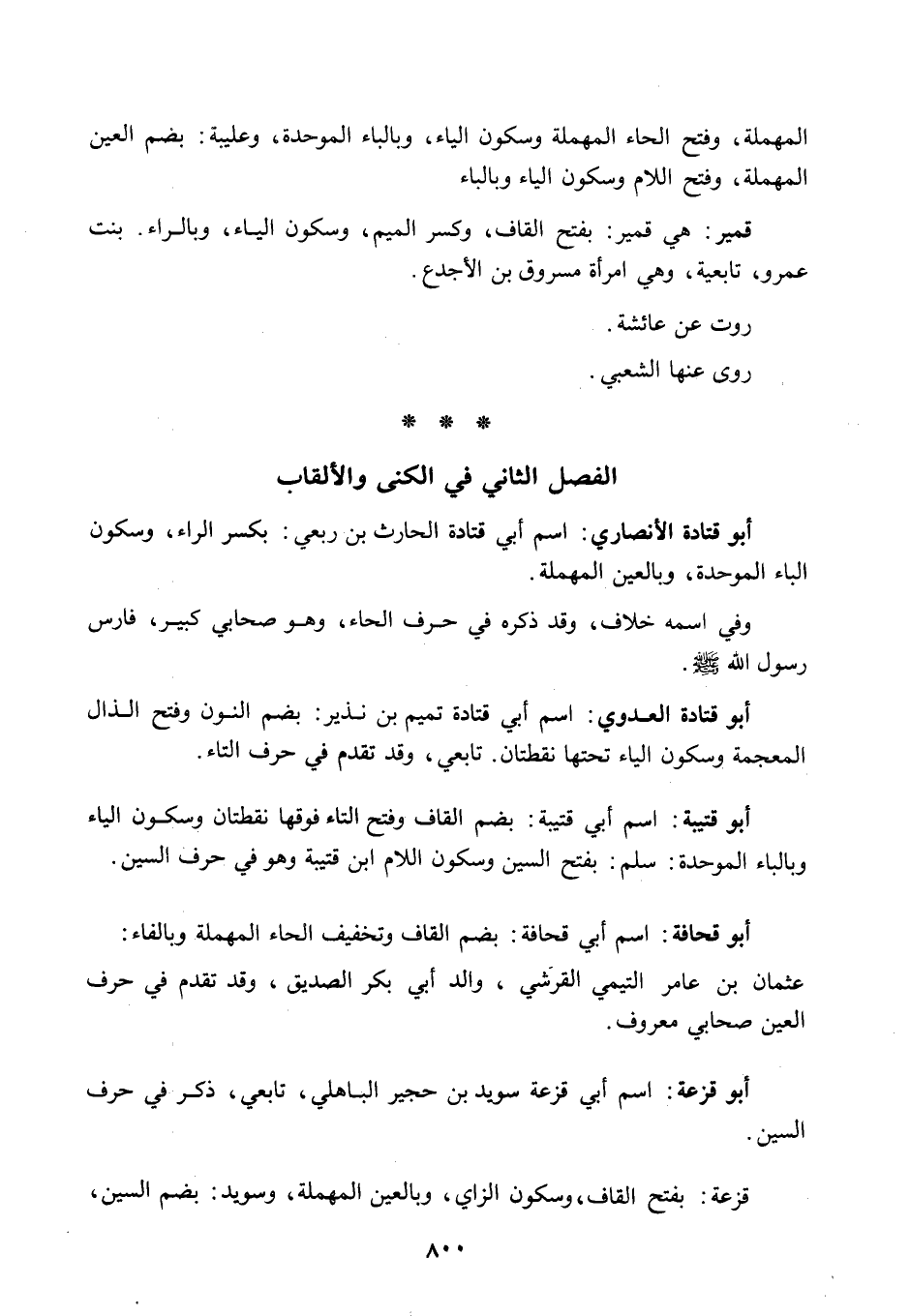 اسم أبي قتادة تميم بن نُذَير: بضم النون، وفتح الذال المعجمة، وسكون الياء تحتها نقطتان. تابعي، وقد تقدم في حرف التاء.