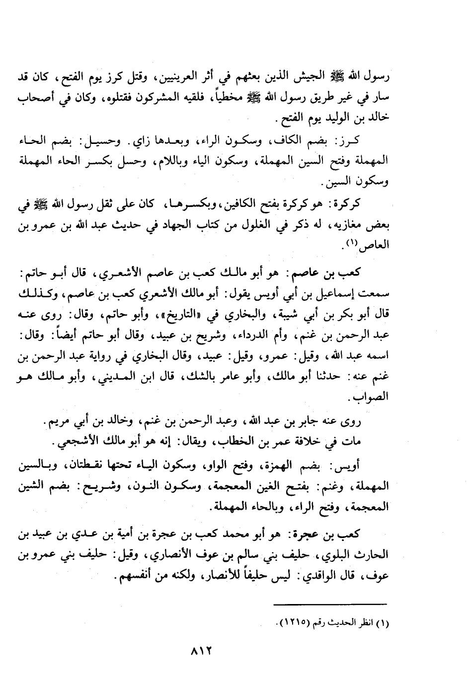 هو أبو محمد، كعب بن عُجْرة بن أُميَّة بن عدي بن عبيد بن الحارث البَلَوي، حليف بني سالم بن عوف الأنصاري. قيل: حليف بني عَمروِ بنِ عوف. قال الواقدي: ليس حليفاً للأنصار، ولكنه من أنفسهم. -[813]- نزل الكوفة، ومات بالمدينة سنة إحدى وخمسين، وقيل: سنة اثنتين، وقيل: ثلاث، وهو ابن خمس وسبعون سنة، وقيل: ابن تسع وسبعين.