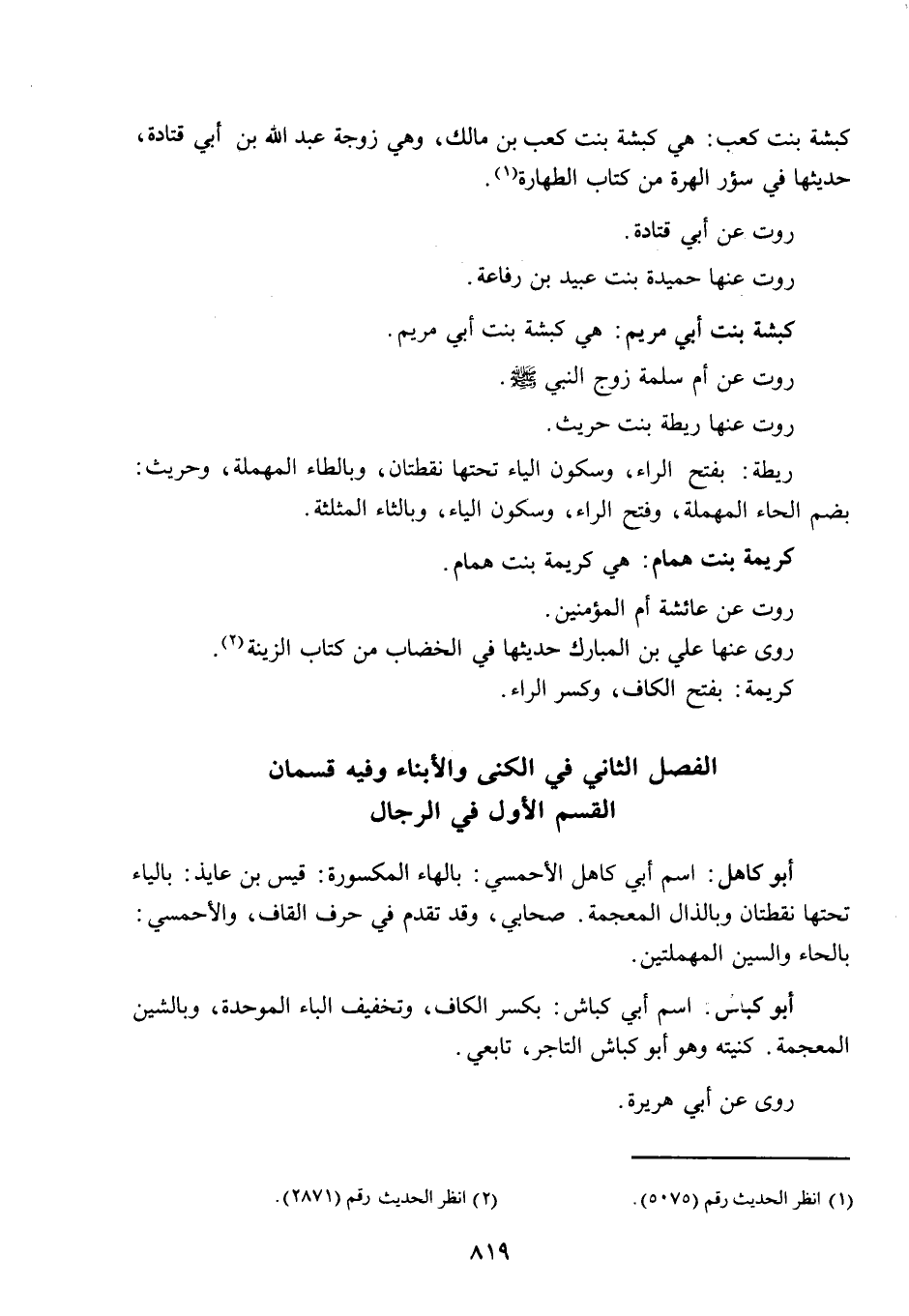 الفصل الثاني: في الكنى والأبناء، وفيه قسمان