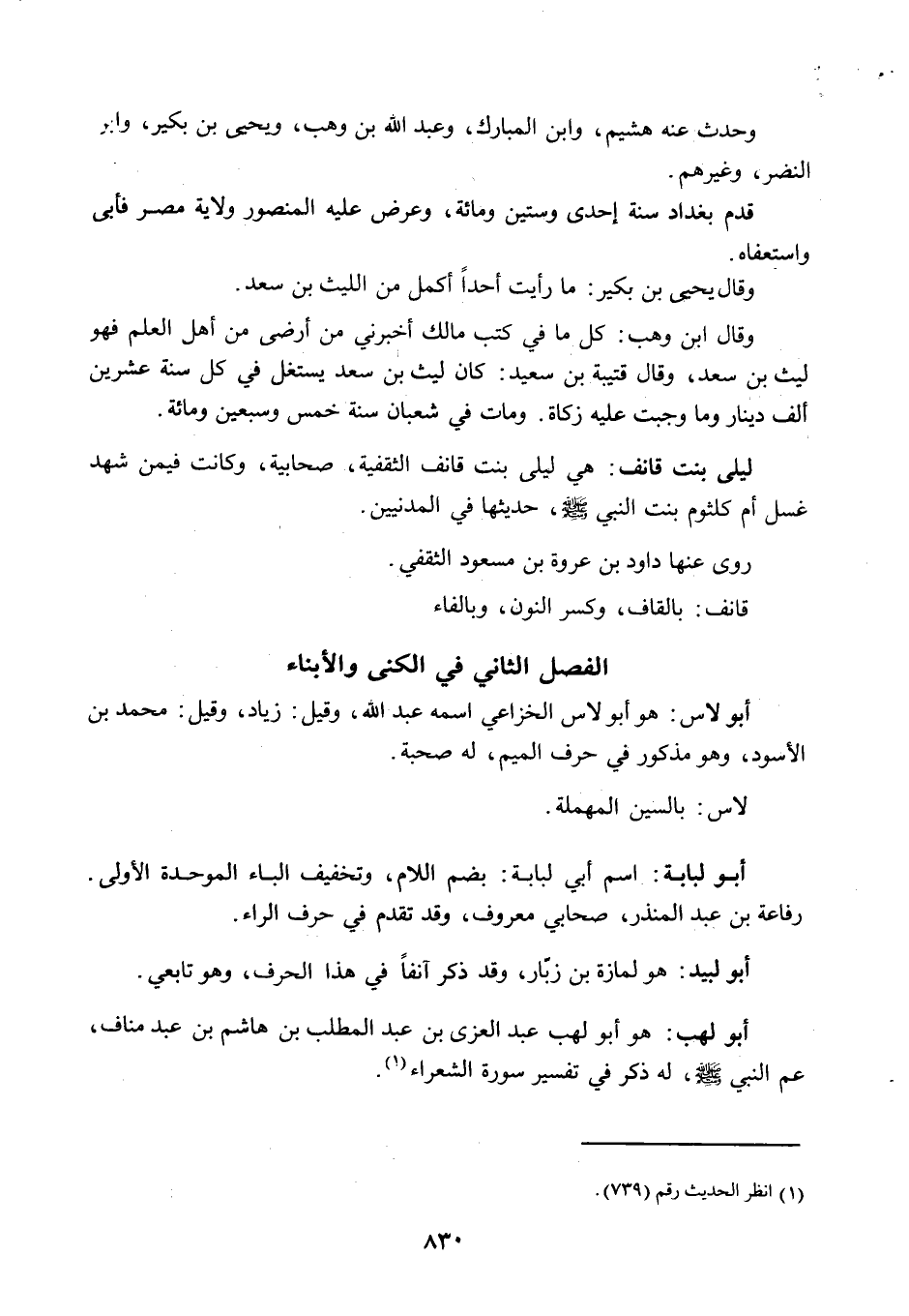 الفصل الثاني: في الكنى والأبناء