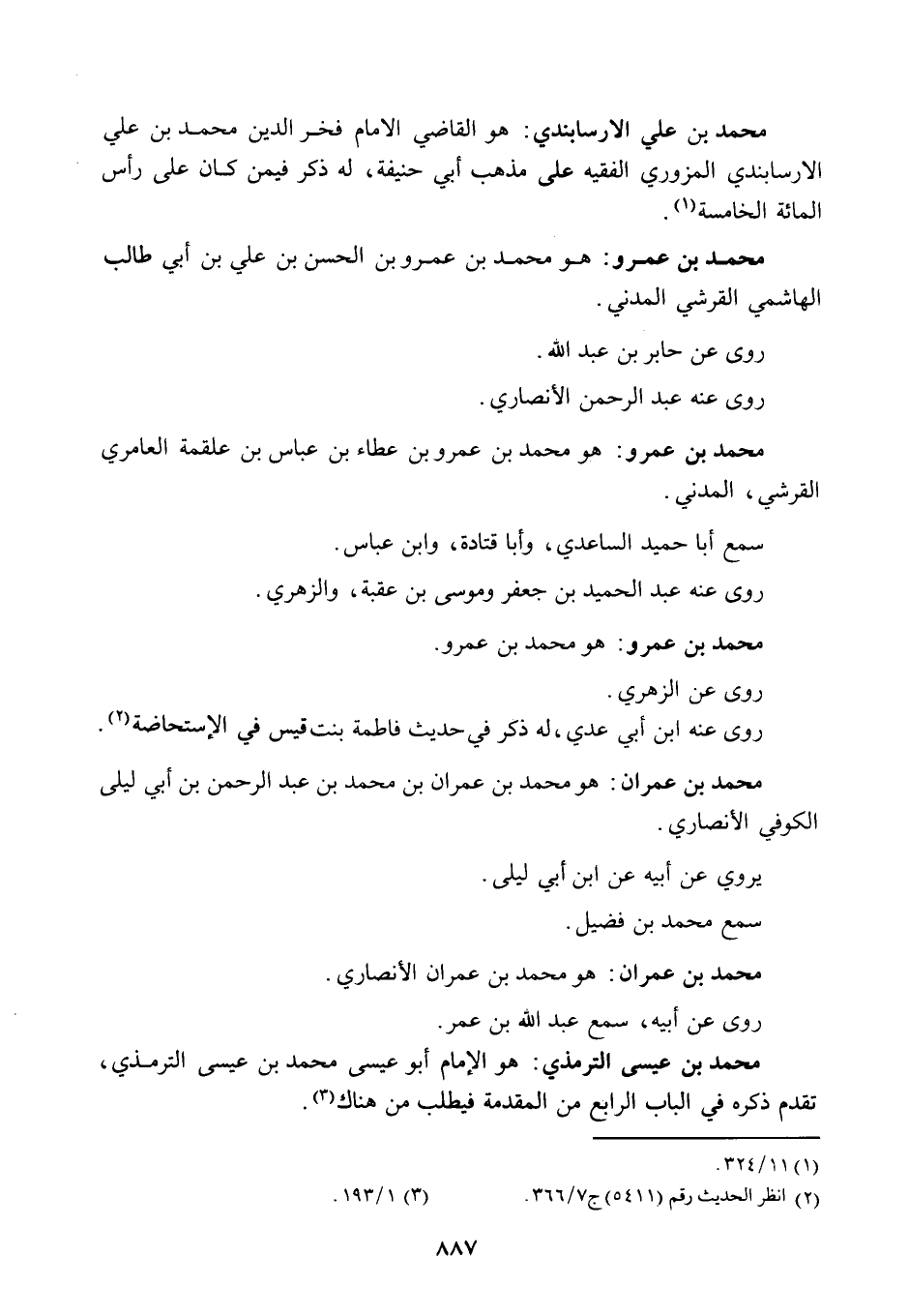 M (2518) تهذيب الكمال (3/1255) ، تهذيب التهذيب (9/387) ، تقريب التهذيب (2/198) ، خلاصة تهذيب الكمال (2/447) ، الكاشف (3/86) ، ميزان الاعتدال (3/678) ، لسان الميزان (7/371) ، الأنساب (2/36، 3/42) ، ثقات (9/153) ، المعين (1178) ، الوافي بالوفيات (4/294) ، طبقات الحفاظ (278) ، سير الأعلام (13/270) ، حاشية التحبير (1/196) ، العبر (1/442، 444) ، الإكمال (4/396) ، ديوان الإسلام (ت587) .
