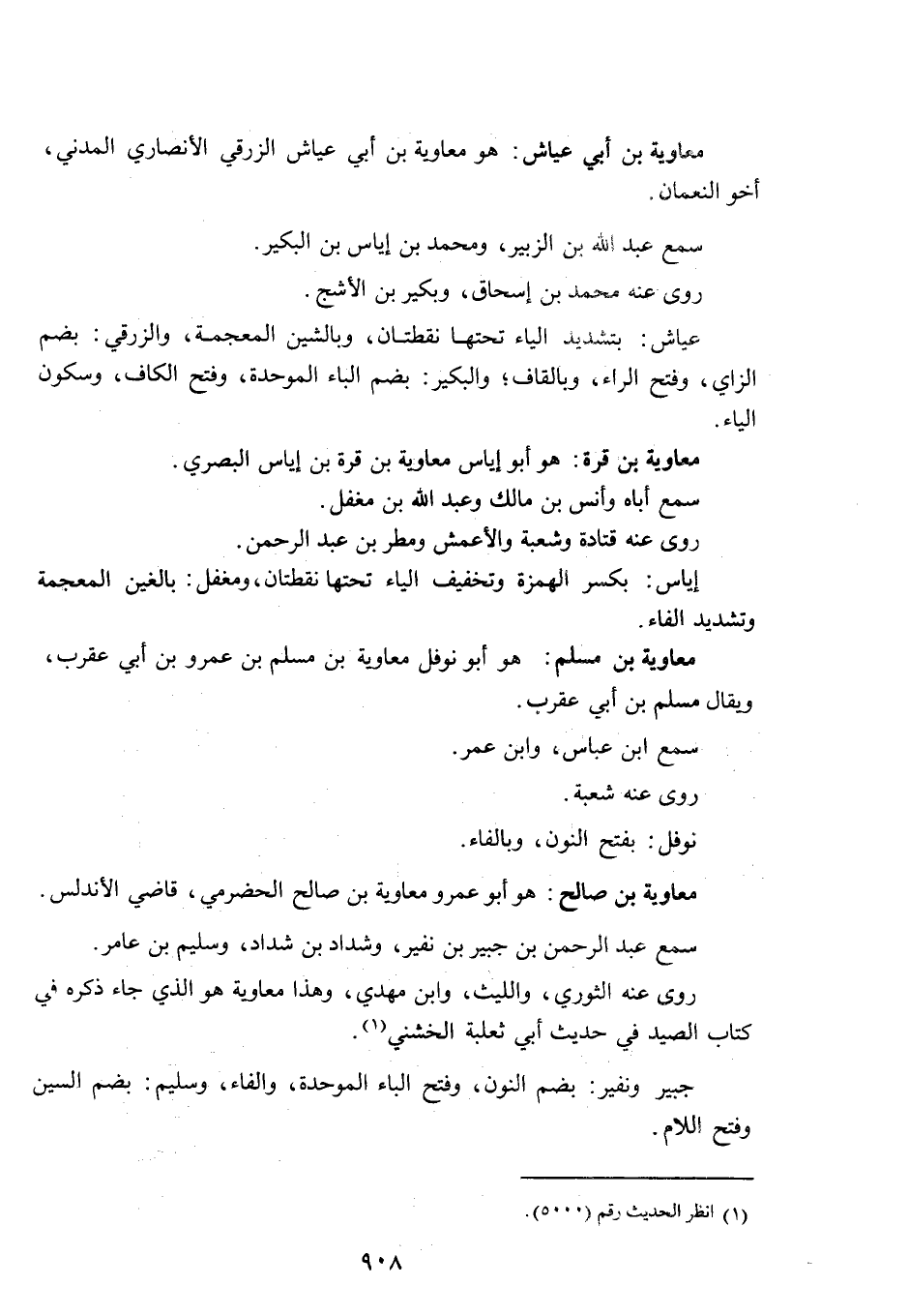 روى عنه الثَّوريُّ، والليث، وابن مهدي، وهذا معاوية هو الذي جاء ذِكْره في كتاب الصيد في حديث أبي ثَعلبة الخشني (¬1) .