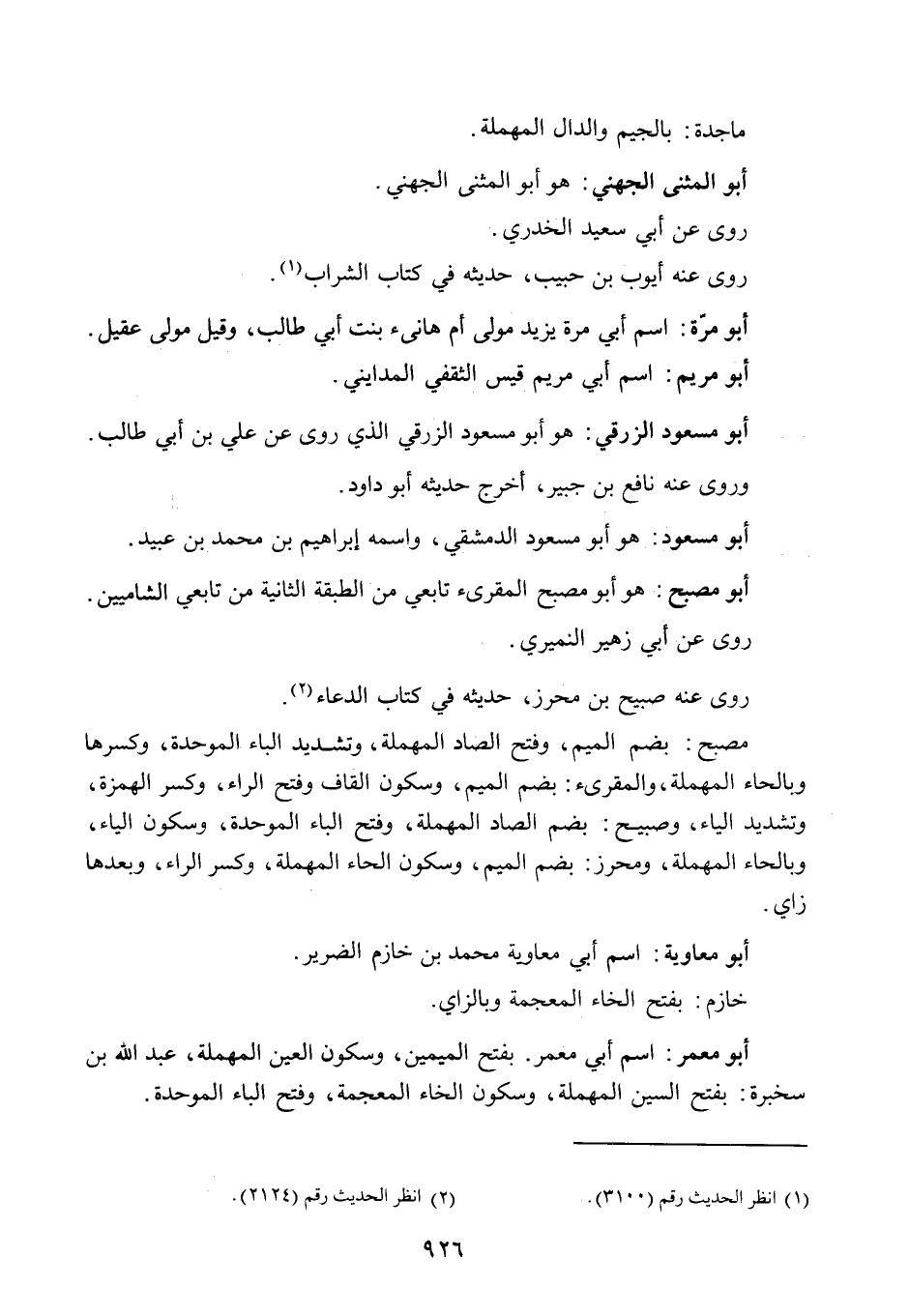 M (2665) تاريخ البخاري الكبير (8/72) ، الكني لمسلم لوحة (104) ، الجرح والتعديل (9/444) ، الثقات (5/565) تهذيب الكمال (1643) ، المغني في الضعفاء (2/806) ، الكاشف (3/331) ، تهذيب التهذيب (12/221) ، تقريب التهذيب (2/469) .