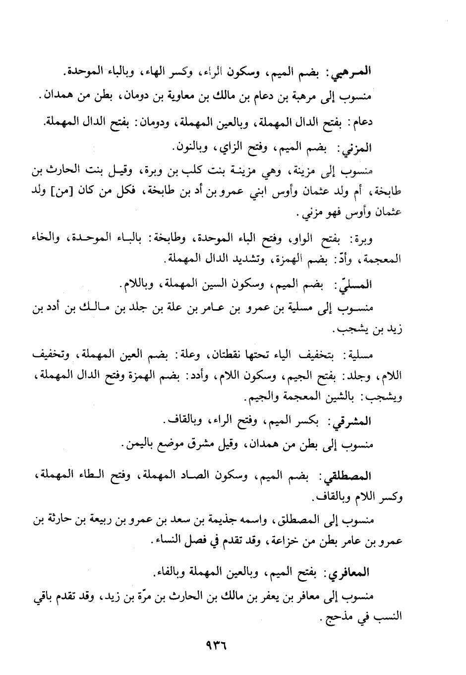 منسوب إلى مَعافر بن يَعْفُرِ بن مالك بن الحارث بن مُرَّة بن زَيد. وقد تقدَّم باقي النسب في مَذْحَج. -[937]-