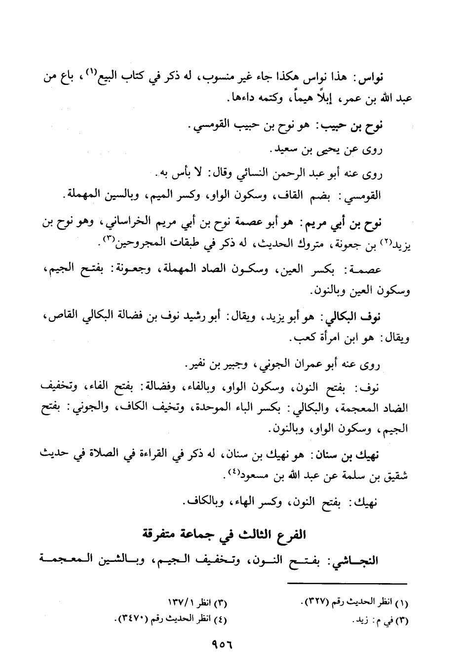M (2791) تهذيب الكمال (3/1427) ، تقريب التهذيب (10/409) ، (880) ، تقريب التهذيب (2/ 309) ، تاريخ البخاري الكبير (8/129) ، تاريخ البخاري الصغير (1/153) ، (154) ، (162) (163) الجرح والتعديل (8/2311) ،الأنساب (289) ،الإكمال (1/569) ، الحلية (6/48) ،الثقات (5/483) معجم الثقات (353) ، التاريخ لابن معين (3/612) ، البداية والنهاية (9/24) ، تنقيح المقال (12596) .