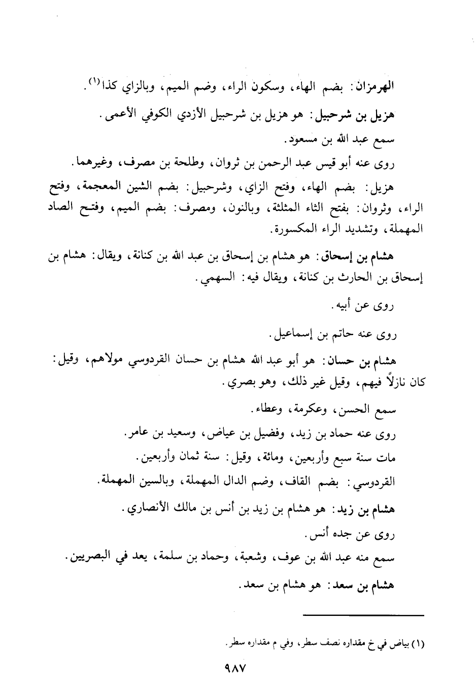 الهُرْمُزَان: بضم الهاء، وسكون الراء، وضم الميم، وبالزاي كذا ... (¬1) .