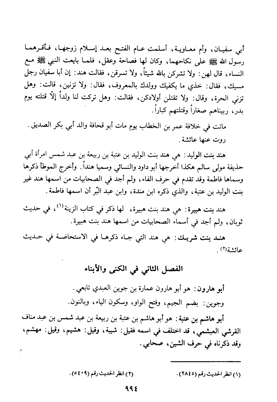 الفصل الثاني: في الكنى والأبناء