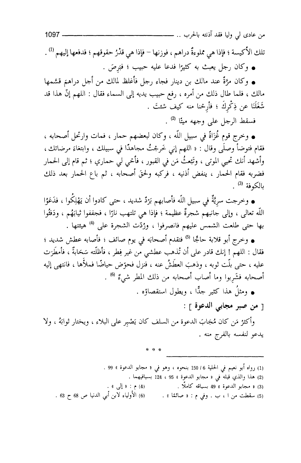 (¬6) أخرجه: ابن أبي الدنيا في " مجابو الدعوة " (131) وفي " الأولياء "، له (63) .