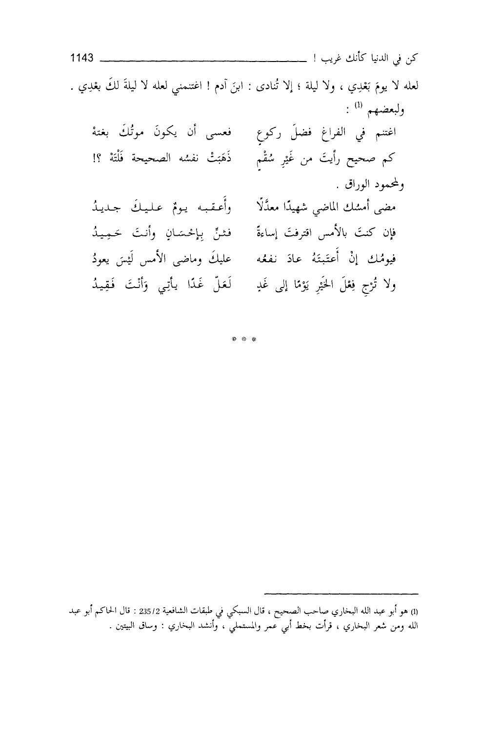 اغتَنِمْ في الفراغ فَضْلَ رُكوعٍ ... فعسى أنْ يكونَ موتُك بَغتة