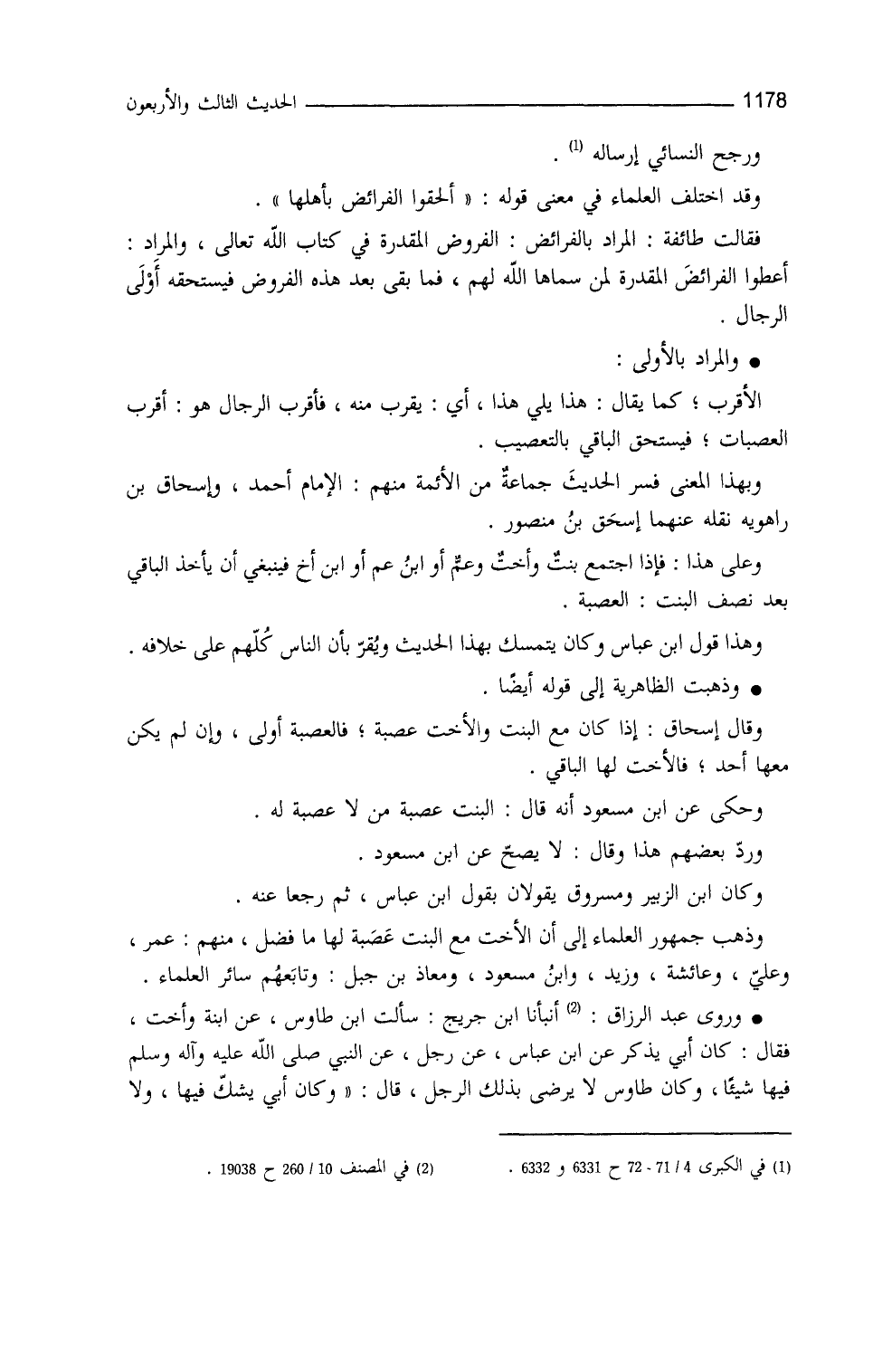 المعنى فسر الحديث جماعة من الأئمة، منهم الإمام أحمد، وإسحاق بن راهويه، نقله عنهما إسحاق بن منصور، وعلى هذا، فإذا اجتمع بنت وأختٌ وعمٌّ أو ابنُ عم أو ابنُ أخ، فينبغي أنْ يأخذَ الباقي بعدَ نصف البنتِ العصبة، وهذا قولُ ابنِ عباس، وكان يتمسَّكُ بهذا الحديث، ويقرُّ بأنَّ الناسَ كلَّهم على خلافه، وذهبت الظاهرية إلى قوله أيضاً.