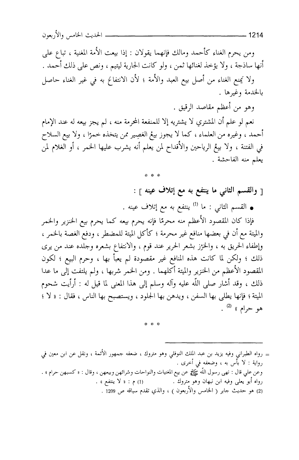ولم يلتفت إلى ما عدا ذلك، وقد أشار - صلى الله عليه وسلم - إلى هذا المعنى لمَّا قيل له: أرأيتَ شحومَ الميتةِ، فإنَّه يُطلى بها السُّفُن، ويُدهن بها الجُلودُ، ويَستصبِحُ بها الناسُ، فقال