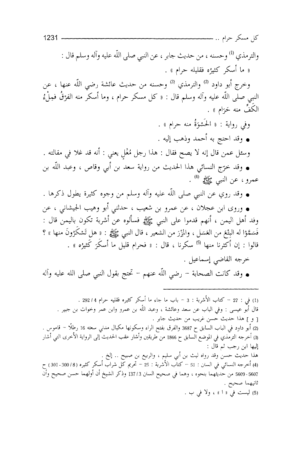 والترمذي (¬1) ، وحسّنه من حديث جابرٍ، عن النَّبيِّ - صلى الله عليه وسلم -، قال: ((ما أسكرَ كَثيرُهُ فَقَليلُهُ حَرامٌ)) .