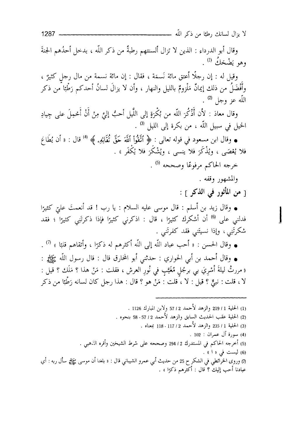 وقال معاذ: لأن أذكر الله من بكرة إلى الليل أحبُّ إليَّ من أنْ أحملَ على جياد الخيل في سبيل الله من بكرة إلى الليل (¬3) .