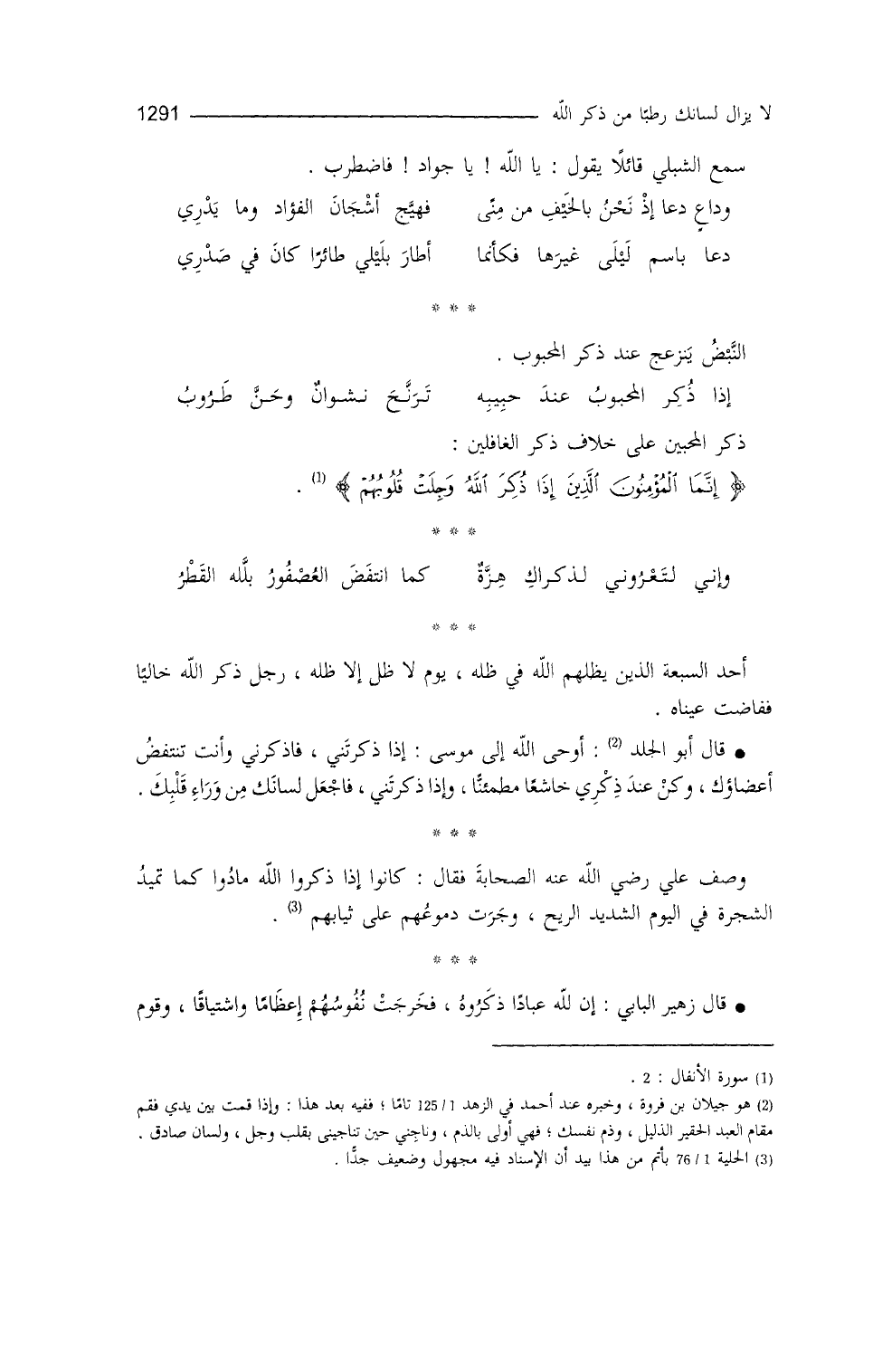 ذكر المحبين على خلاف ذكر (¬3) الغافلين: {إِنَّمَا الْمُؤْمِنُونَ الَّذِينَ إِذَا ذُكِرَ اللهُ وَجِلَتْ قُلُوبُهُمْ} (¬4) .