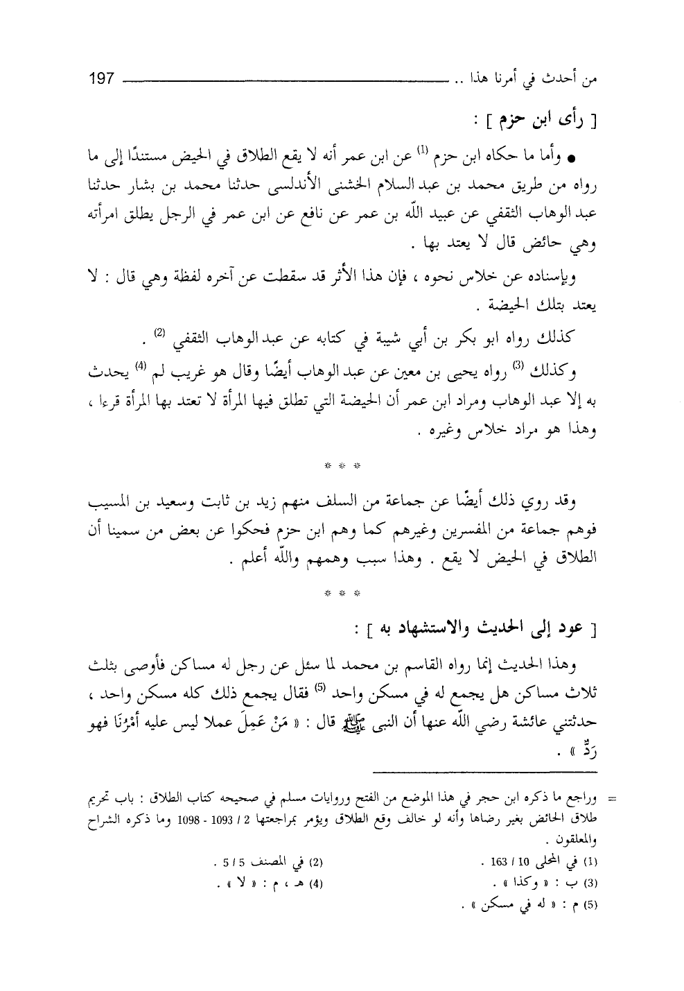 وقد روي ذلك أيضاً عن جماعةٍ منَ السَّلف، منهم: زيدُ بنُ ثابت (¬5) ، وسعيد بنُ المسيب (¬6) ، فوهم جماعة من المفسرين وغيرهم كما وهم ابنُ حزم فحَكَوا عن بعضِ من سمينا أنَّ الطلاق في الحيض لا يقع، وهذا سببُ وهمهم، والله أعلم.