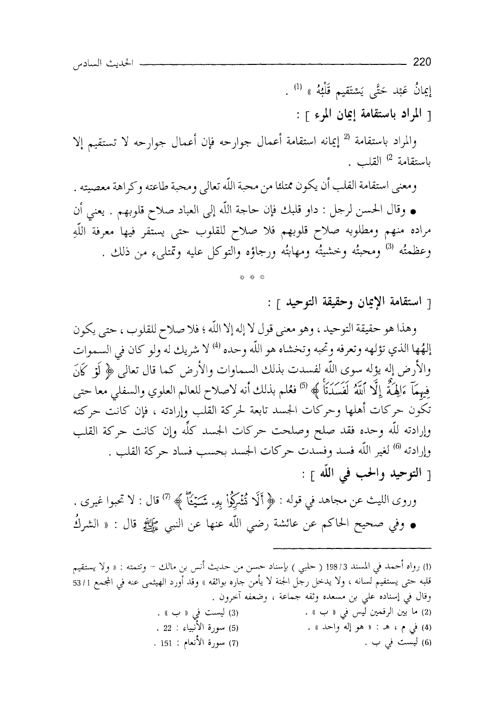 والمراد باستقامة إيمانه: استقامةُ أعمال جوارحه، فإنَّ أعمالَ الجوارحِ لا تستقيمُ إلا باستقامة القلب، ومعنى استقامة القلب: أنْ يكونَ ممتلئاً مِنْ محبَّةِ الله (¬1) ، ومحبَّة طاعته، وكراهة معصيته.