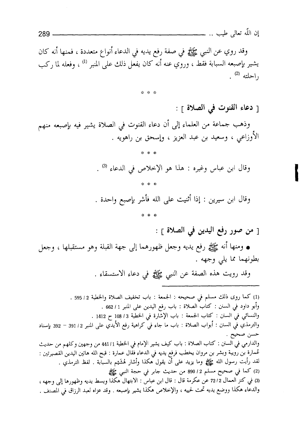 وذهب جماعة من العلماء إلى أنَّ دعاء القنوت في الصلاة يُشير فيه بإصبعه، منهم: الأوزاعي، وسعيدُ بن عبد العزيز، وإسحاق بن راهويه. وقال ابن عباس وغيره: هذا هو الإخلاص في الدعاء (¬5) ، وعن ابن سيرين: إذا أثنيت على الله، فأَشِرْ بإصبعٍ واحدة.