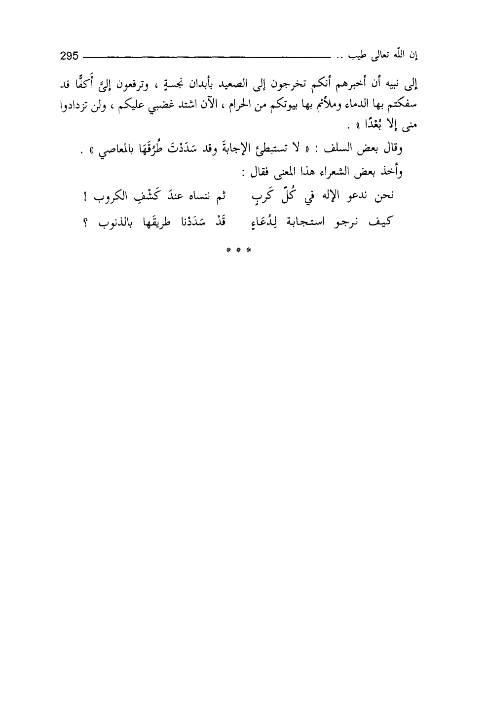 كَيْفَ نَرجُو إجابةً لدُعاءٍ ... قَدْ سَدَدْنا طرِيقَها بالذُّنوب
