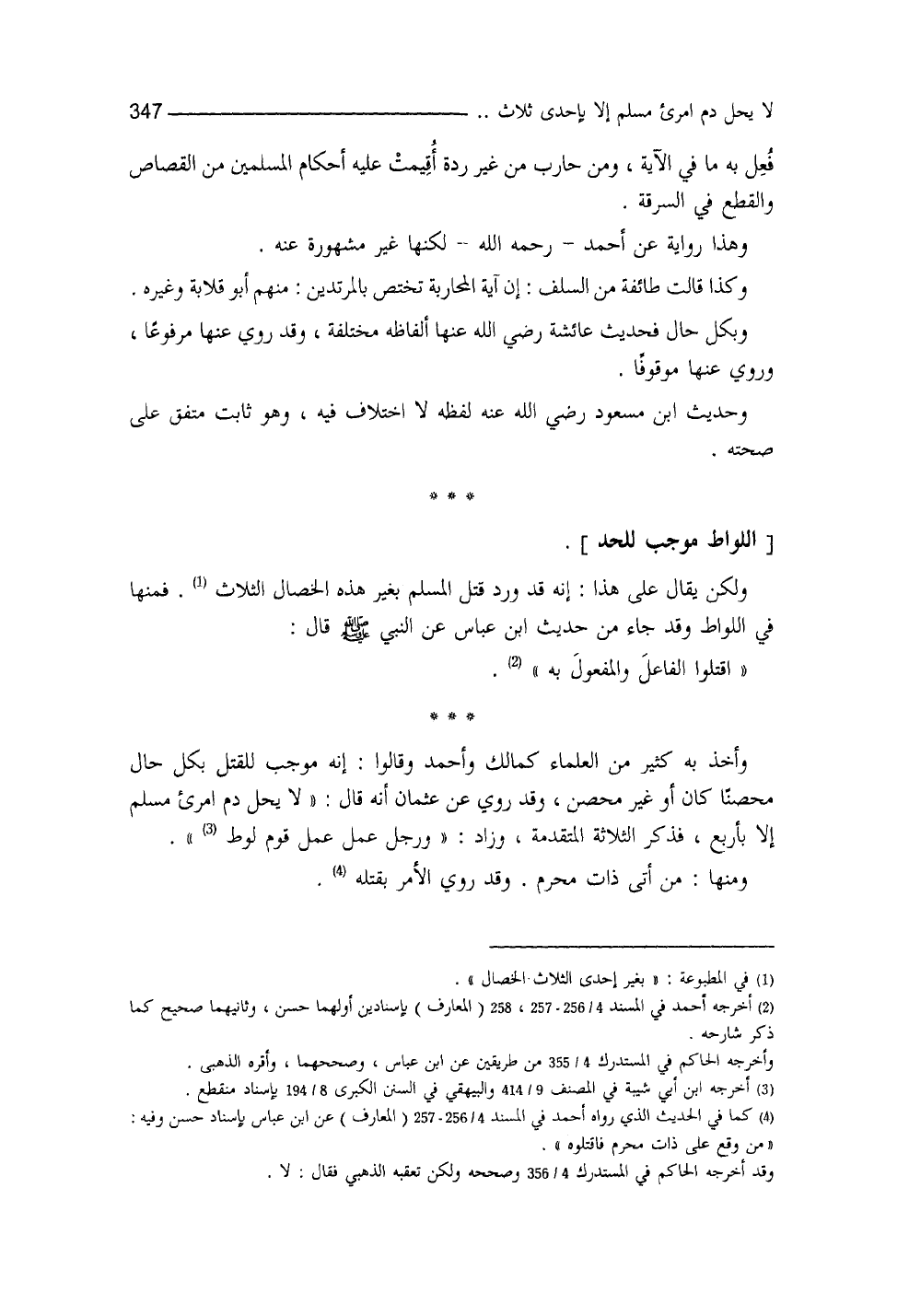 وأخذ به كثيرٌ من العلماء كمالكٍ وأحمد، وقالوا: إنَّه موجبٌ للقتل بكلِّ حالٍ، محصناً كان أو غير محصن (¬3) ، وقد رُوي عن عثمان أنَّه قال: لا يحلُّ دمُ امرئ مسلم إلا بأربع، فذكر الثلاثة المتقدمة، وزاد: ورجل عمِلَ عمَلَ قوم لوط (¬4) .