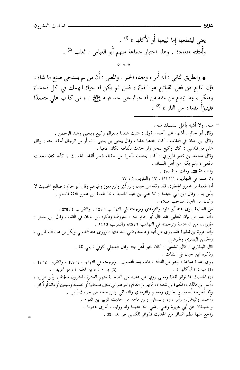 (¬2) أخرجه: الطيالسي (2420) ، وأحمد 2/410 و469 و519، والدارمي (559) ، والبخاري 1/38 (110) و8/54 (6197) ، ومسلم 1/7 (2) (3) من حديث أبي هريرة، به، وهو حديث متواتر انظر تخريج بعض طرقه في تعليقي على " شرح التبصرة والتذكرة " 1/148-149.
