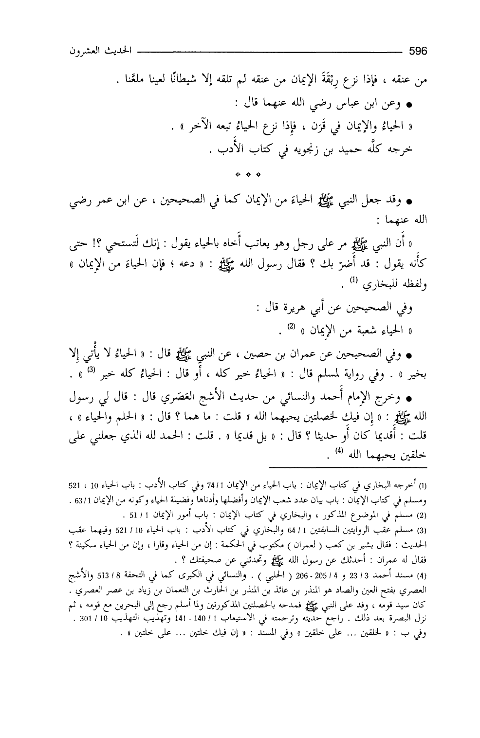 (¬4) صحيح البخاري 1/9 (9) ، وصحيح مسلم 1/46 (35) (57) و (58) .