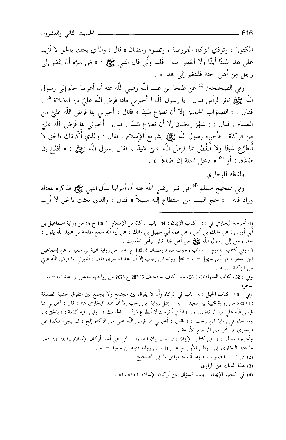 (¬1) صحيح البخاري 1/18 (46) ، وصحيح مسلم 1/31 (11) (9) .