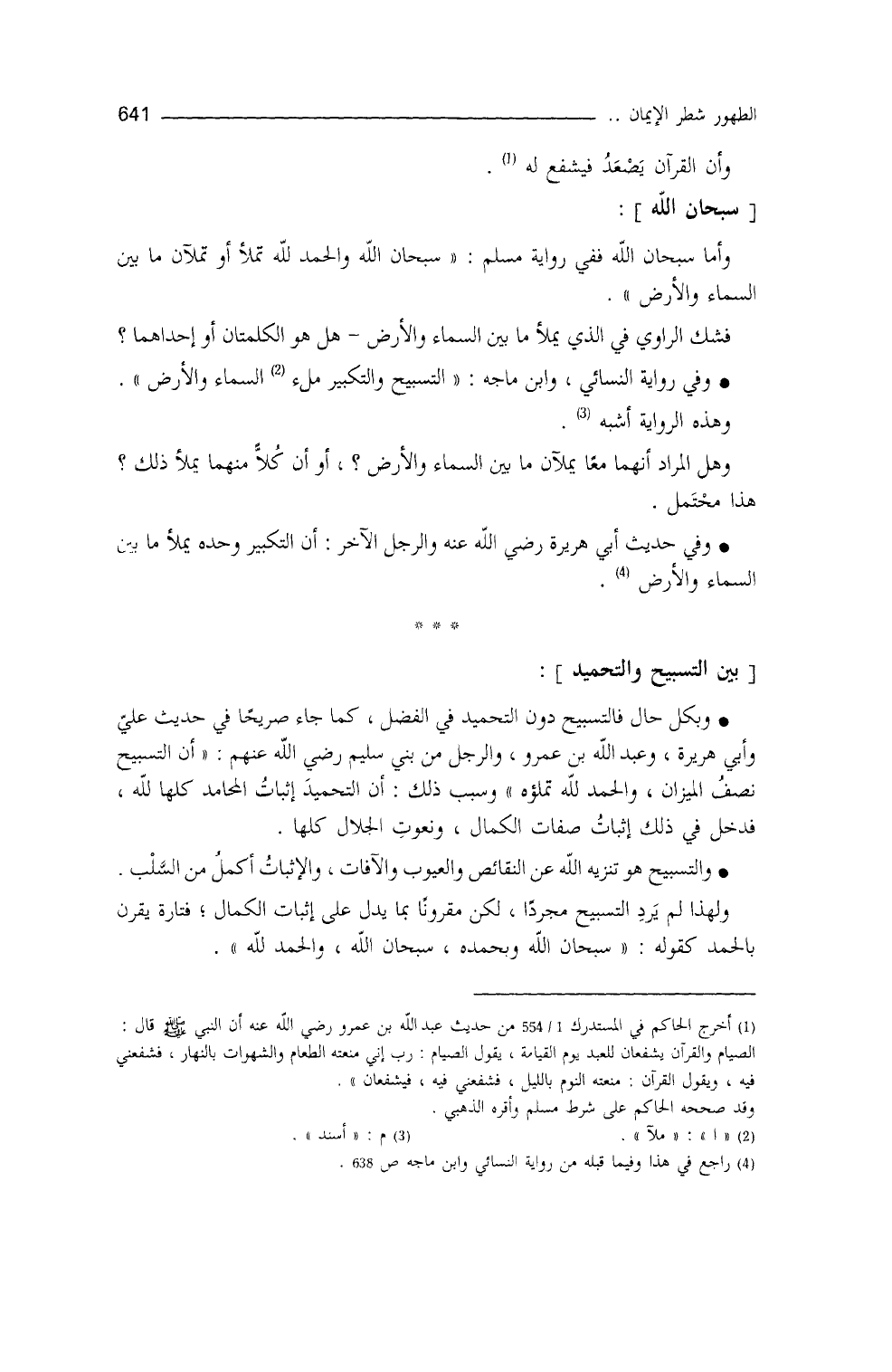 (¬4) قال السندي: ((التسبيح هو التنزيه عن جميع ما لا يليق بجنابه الأقدس)) . حاشية السندي 3/78.
