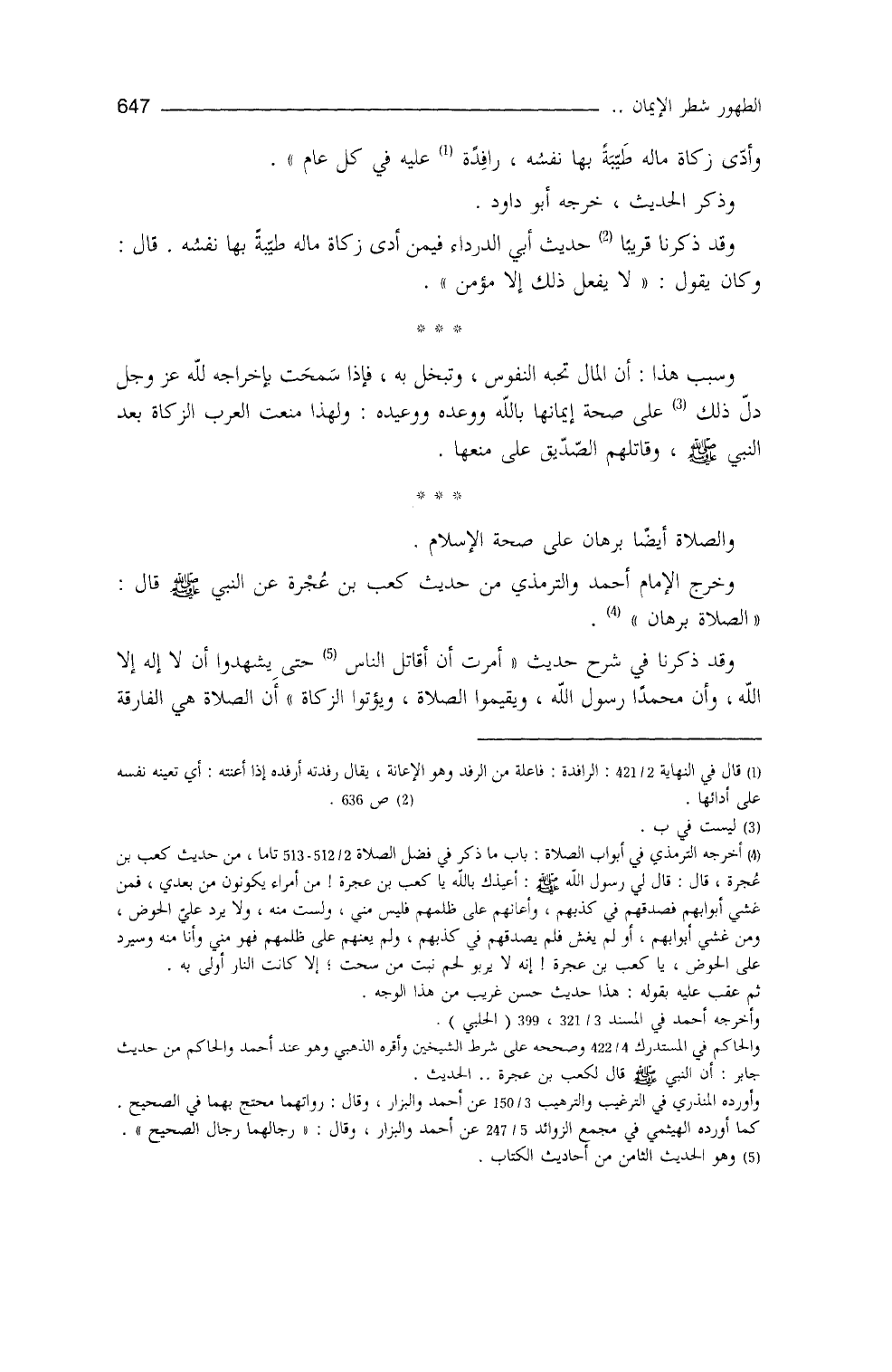 والترمذي (¬4) من حديث كعب بن عُجره، عن النَّبيِّ - صلى الله عليه وسلم - قال: ((الصلاة برهان)) .