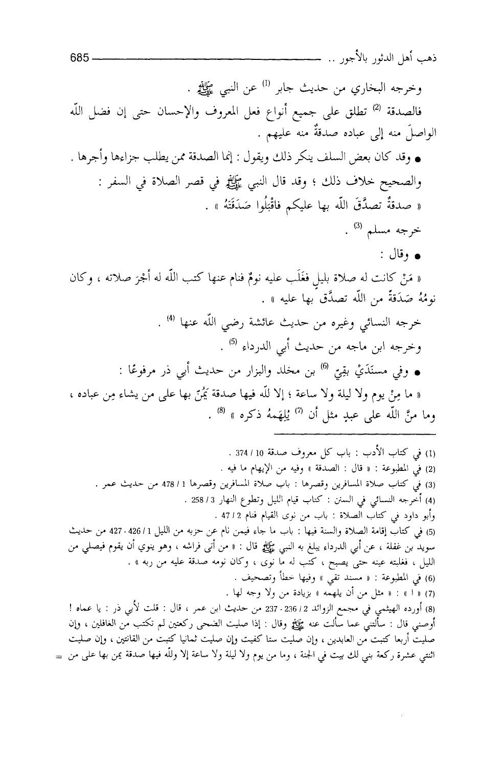 وخرَّجه البخاري (¬1) من حديث جابرٍ، عن النَّبيِّ - صلى الله عليه وسلم -. فالصدقة تُطلق على جميع أنواع فعل المعروف والإحسّان، حتَّى إنَّ فضل الله الواصل منه إلى عباده صدقة منه عليهم. وقد كان بعضُ السَّلف يُنكر ذلك، ويقول: إنَّما الصَّدقةُ ممَّن يطلُبُ جزاءها وأجرَها، والصَّحيحُ خلافُ ذلك، وقد قال النَّبيُّ - صلى الله عليه وسلم - في قصر الصَّلاة في السفر: ((صدقةٌ تصدَّقَ اللهُ بها عليكم، فاقبلوا صدقتَه)) خرَّجه مسلم (¬2) ، وقال: من كانت له صلاةٌ بليلٍ، فغلب عليه نومٌ فنام عنها، كتب الله له أجرَ صلاتِه، وكان نومُه صدقةً مِنَ الله تصدَّق بها عليه)) . خرَّجه النَّسائي وغيرُه من حديث عائشة (¬3) ،