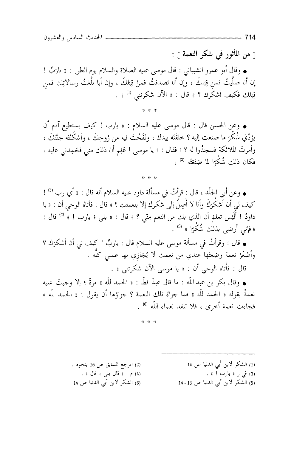 (¬6) أخرجه: ابن أبي الدنيا في " الشكر " (6) ، وأحمد بن حنبل في " الزهد " (349) ، وأبو نعيم في " حلية الأولياء " 6/56، والبيهقي في " شعب الإيمان " (4415) .