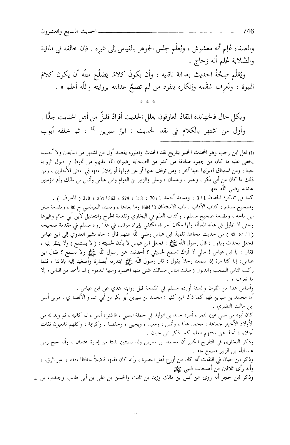 وبكلِّ حالٍ فالجهابذةُ النقادُ العارفون بعلل الحديث أفرادٌ قليلٌ من أهل الحديث جداً، وأوَّل من اشتهر بالكلام (¬1) في نقد الحديث ابنُ سيرين، ثم خلفه أيوبُ