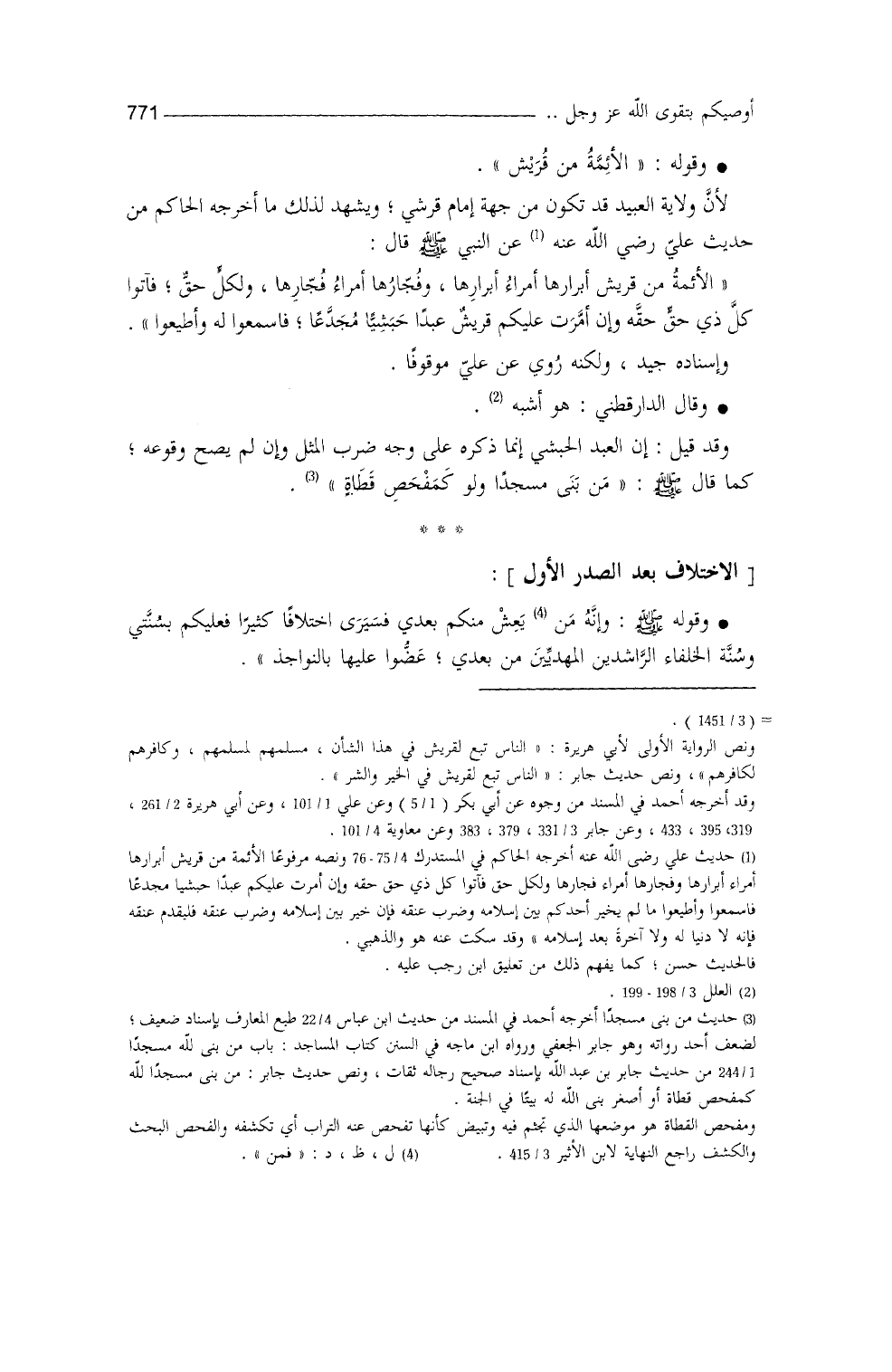 أبرارها، وفجارُها أمراءُ فجارها، ولكلٍّ حقٌّ، فآتوا كلَّ ذي حقٍّ حقَّه، وإنْ أمرت عليكم قريش عبداً حبشياً مجدعاً، فاسمعوا له وأطيعوا)) وإسناده جيد، ولكنَّه روي عن عليٍّ موقوفاً (¬3) ، وقال الدارقطني (¬4) : هو أشبه.