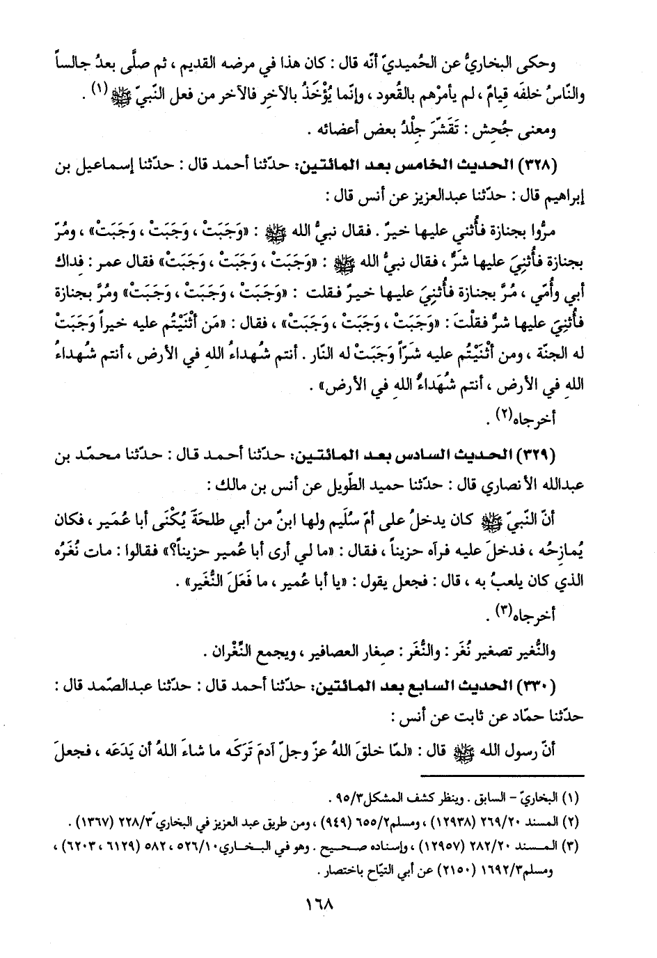 (٣٣٠) الحديث السابع بعد المائتين: حدّثنا أحمد قال: حدّثنا عبد الصّمد قال: حدّثنا حمّاد عن ثابت عن أنس: