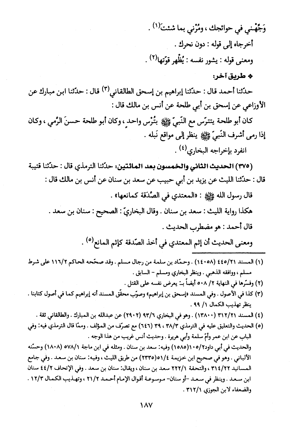 (٤) المسند ٢١/ ٣١٢ (١٣٨٠٠). وهو في البخاري ٦/ ٩٣ (٢٩٠٢) عن عبد اللَّه بن المبارك. والطالقاني ثقة.