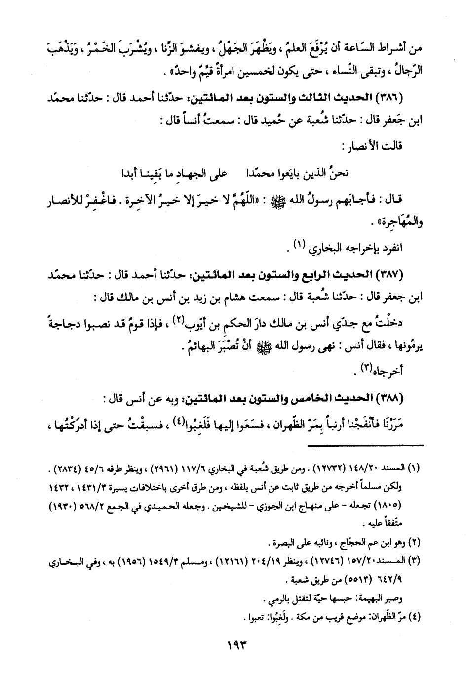 (٣٨٧) الحديث الرابع والستون بعد المائتين: حدّثنا أحمد قال: حدّثنا محمّد ابن جعفر قال: حدّثنا شُعبة قال: سمعت هشام بن زيد بن أنس بن مالك قال: