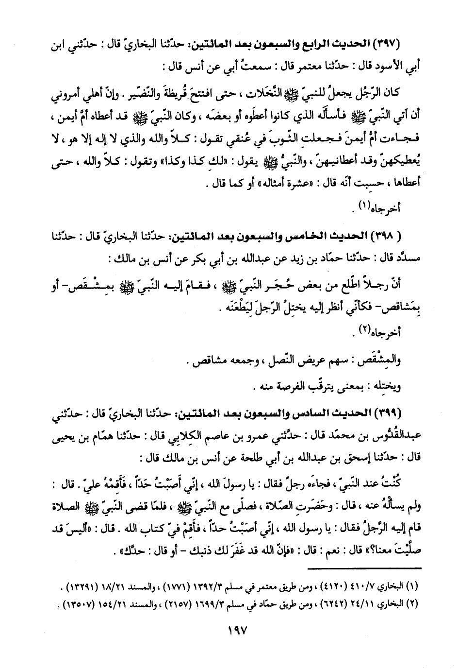 (٣٩٧) الحديث الرابع والسبعون بعد المائتين: حدّثنا البخاريّ قال: حدّثني ابن أبي الأسود قال: حدّثنا معتمر قال: سمعتُ أبي عن أنس قال:
