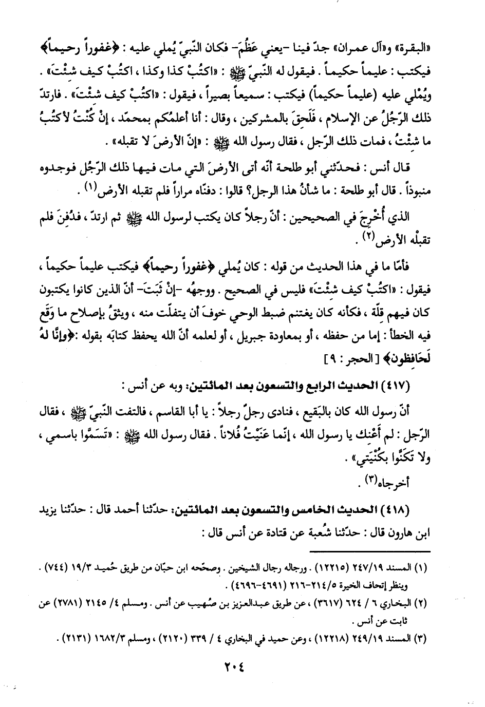 (٤١٨) الحديث الخامس والتسعون بعد المائتين: حدّثنا أحمد قال: حدّثنا يزيد ابن هارون قال: حدّثنا شُعبة عن قتادة عن أنس قال: