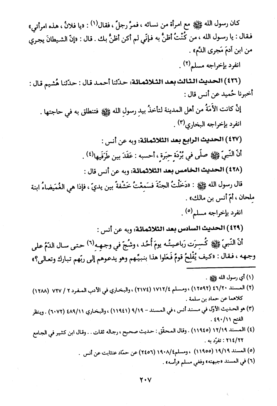 (٤٢٦) الحديث الثالث بعد الثلاثمائة: حدّثنا أحمد قال: حدّثنا هُشيم قال: أخبرنا حُميد عن أنس قال: