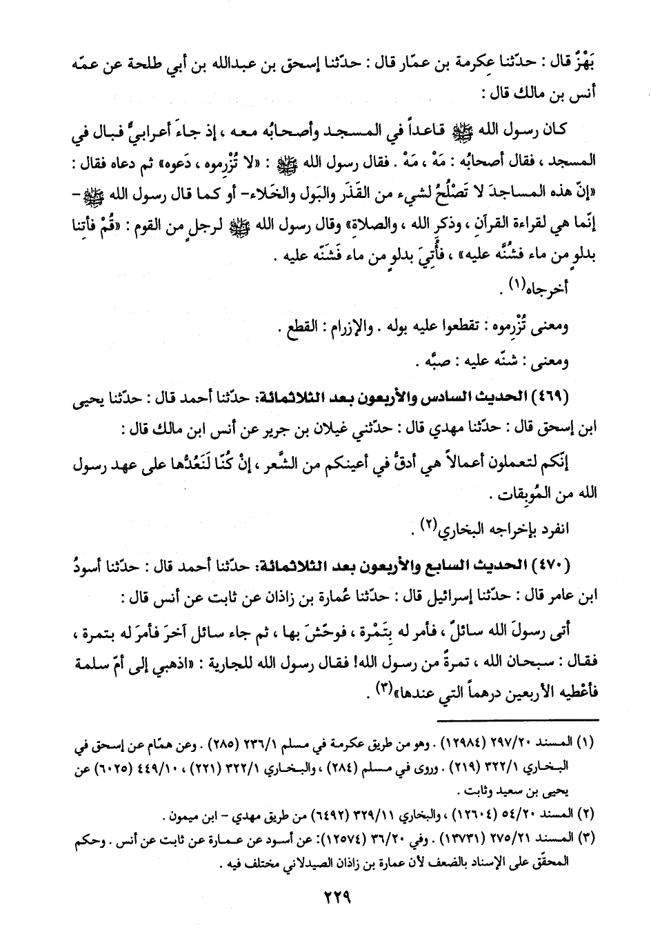 (٤٦٩) الحديث السادس والأربعون بعد الثلاثمائة: حدّثنا أحمد قال: حدّثنا يحيى ابن إسحق قال: حدّثنا مهدي قال: حدّثني غيلان بن جرير عن أنس ابن مالك قال: