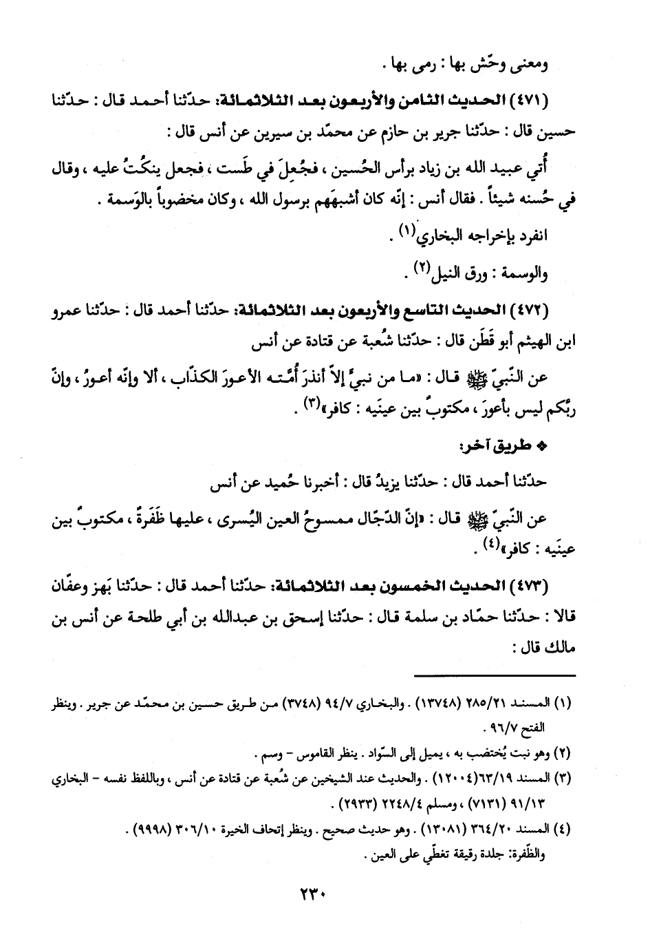 (٤٧١) الحديث الثامن والأربعون بعد الثلاثمائة: حدّثنا أحمد قال: حدّثنا حسين قال: حدّثنا جرير بن حازم عن محمّد بن سيرين عن أنس قال: